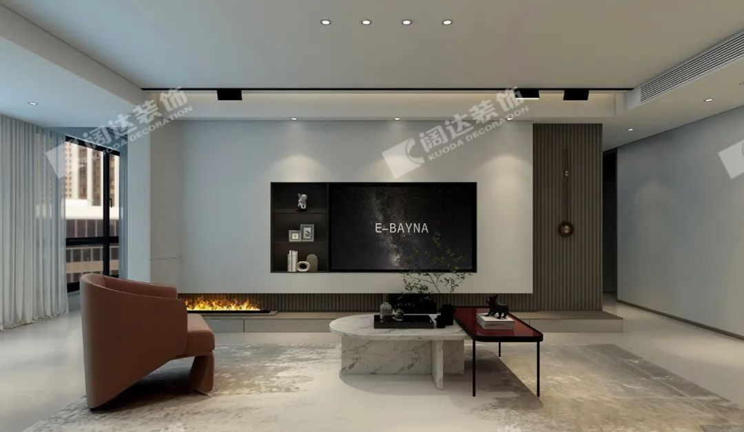 本案用簡(jiǎn)潔的木制格柵材質(zhì)做主背景,流露出生活的溫度,傳遞著居住者對(duì)美好生活的向往。簡(jiǎn)約格局呈現(xiàn)出現(xiàn)代居家生活的精致、舒適與自由。