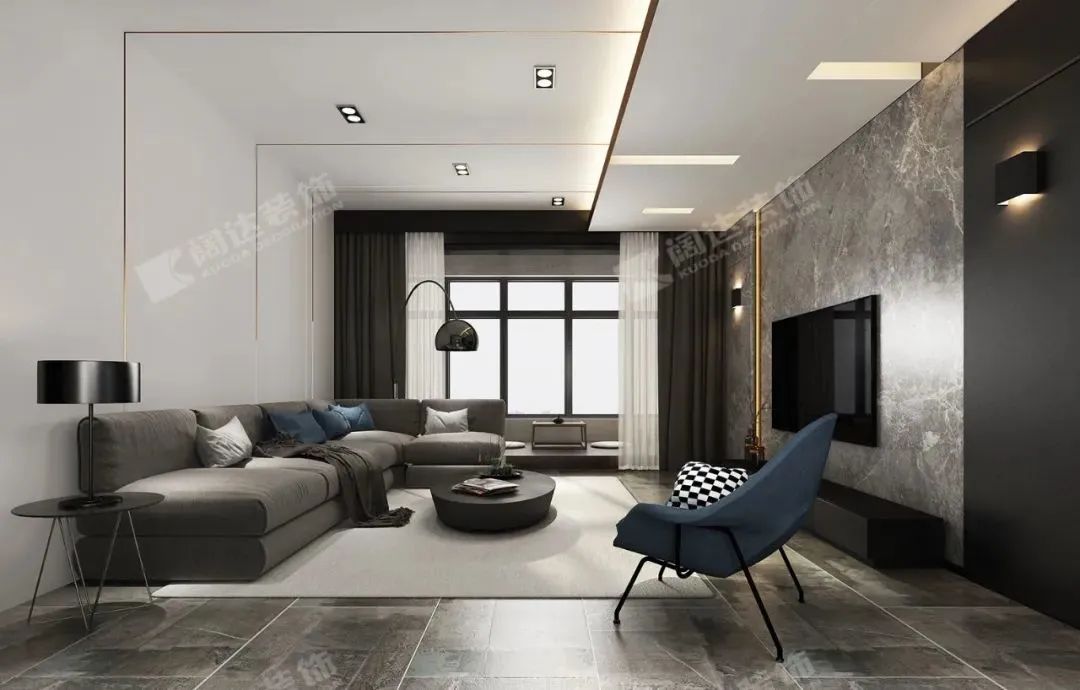 沙發(fā)茶幾地毯居中,給在此間的人足以縱覽全屋的視角,又可將窗外風(fēng)景盡收眼底,臨摹生活最舒適自在的場景。
