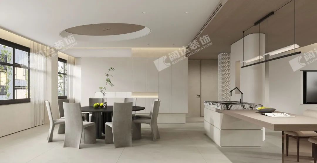 從長期主義與人文關懷的視角,通過內部環境的營造,達成解放自然的天性,關注家庭關系、情感互動、藝術交鋒、生活品質,本案在有界的空間中呈現出與內心對話的無限性,以及歷經時間洗禮而愈發純粹的日常意趣,在精神共鳴中陪伴居者的生活。