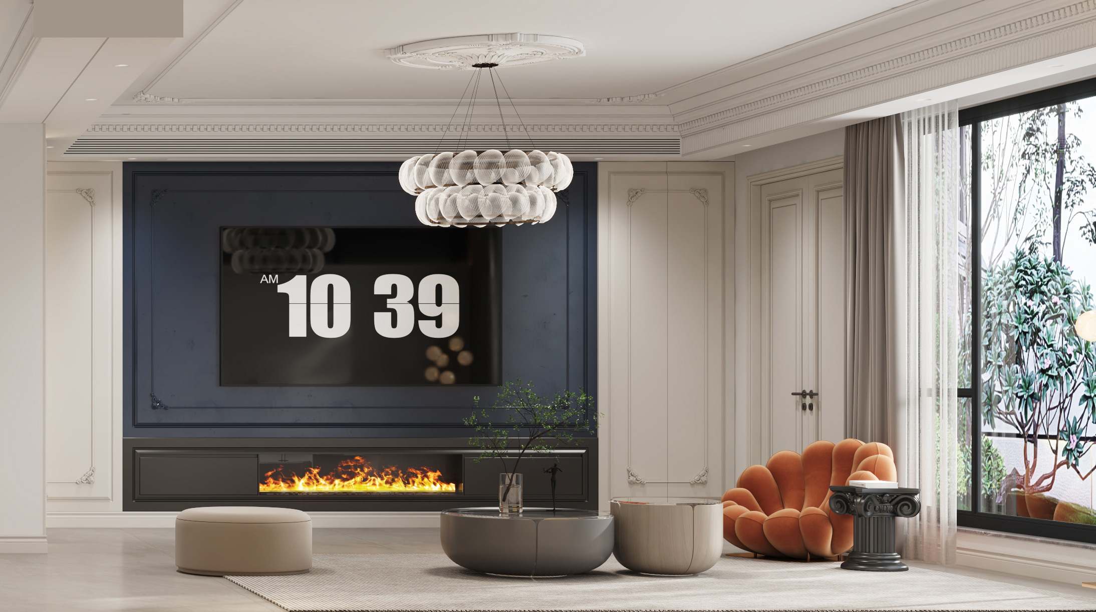 頂面?zhèn)裙猓箖?yōu)美的石膏線條更具層次感,保證了視覺上的明凈簡約,空間采光也更通透明亮。
