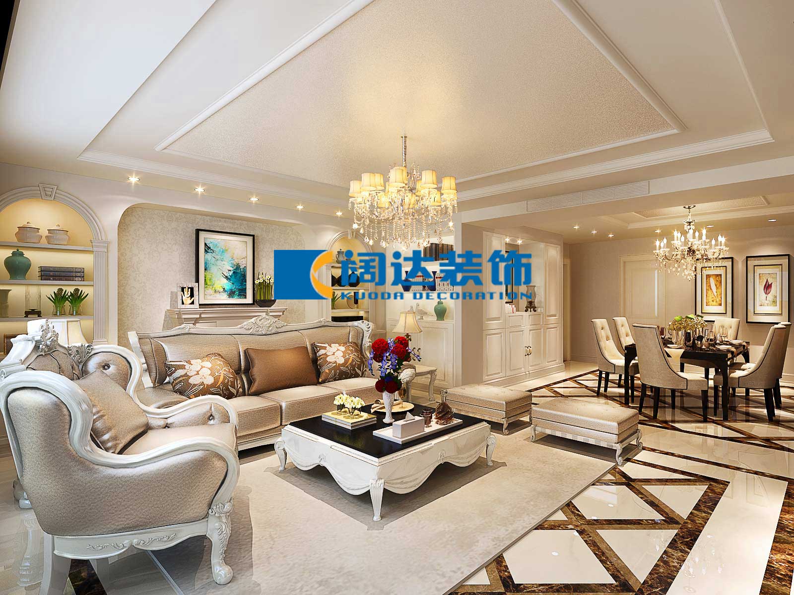 本案例采用歐式設計風格,通過整體色彩及家具的搭配營造自然、舒適、高雅的生活氛圍,此設計案例也在相當程度上表現出其居住者的品位、愛好和生活價值觀。